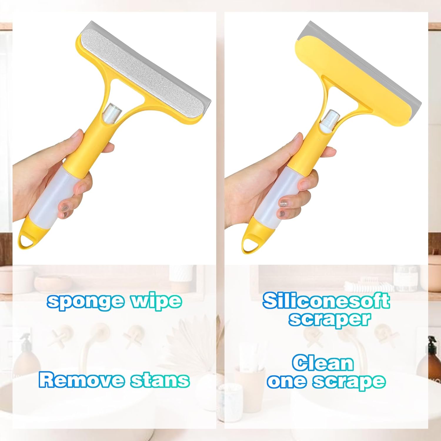 Simplify your cleaning routine with the ultimate 3-in-1 tool that sprays, wipes, and scrapes in one easy motion. No more juggling bottles and cloths—just grab it and go for a spotless, streak-free shine every time.